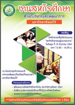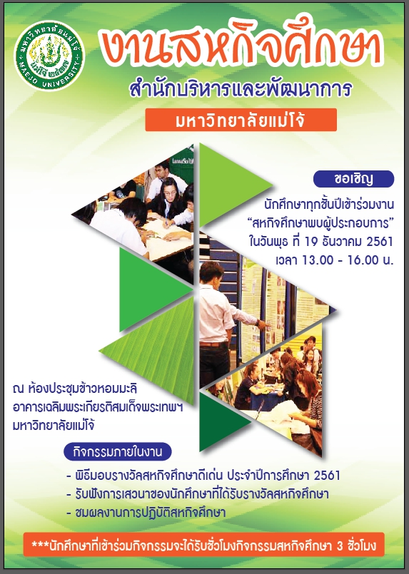 งานสหกิจศึกษา สำนักบริหารและพัฒนาการ มหาวิทยาลัยแม่โจ้